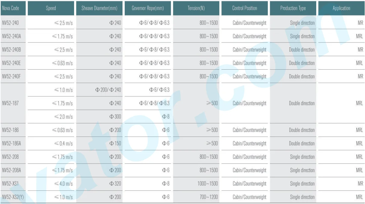 | Type: | NV, Unidirectional & Bi-Directional | Keyword: | Elevator overspeed governor |